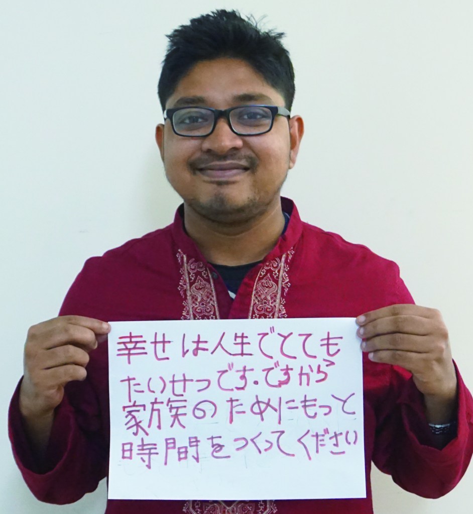 ①ダッカ出身/②アメリカン インターナショナル大学/③Javascript, C#, Java/④世界の歴史を学ぶこと/⑤ほうれんそう